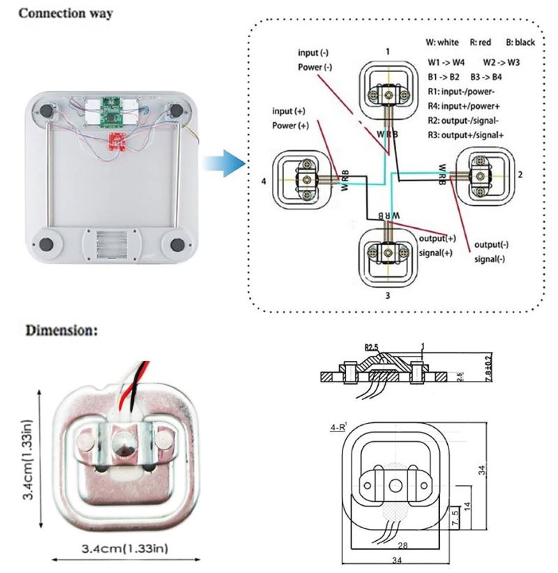 -Using four full-bridge format sensors, measurement range for SUM four sensors: 50kgx4 = 200kg