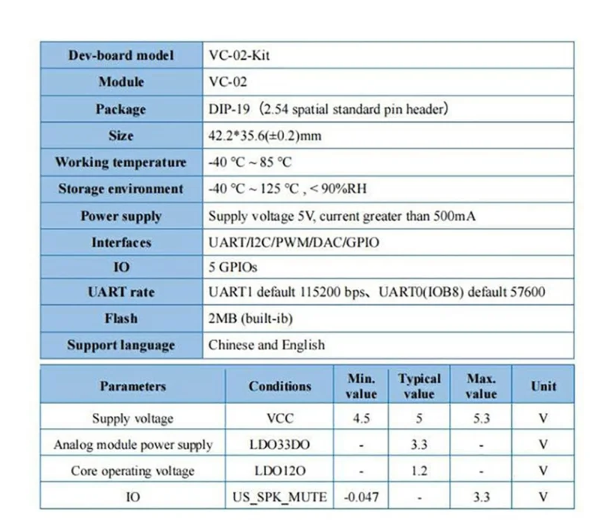 1 x Ai-Thinker VC-02-Kit ( Module, Mic, Speaker)